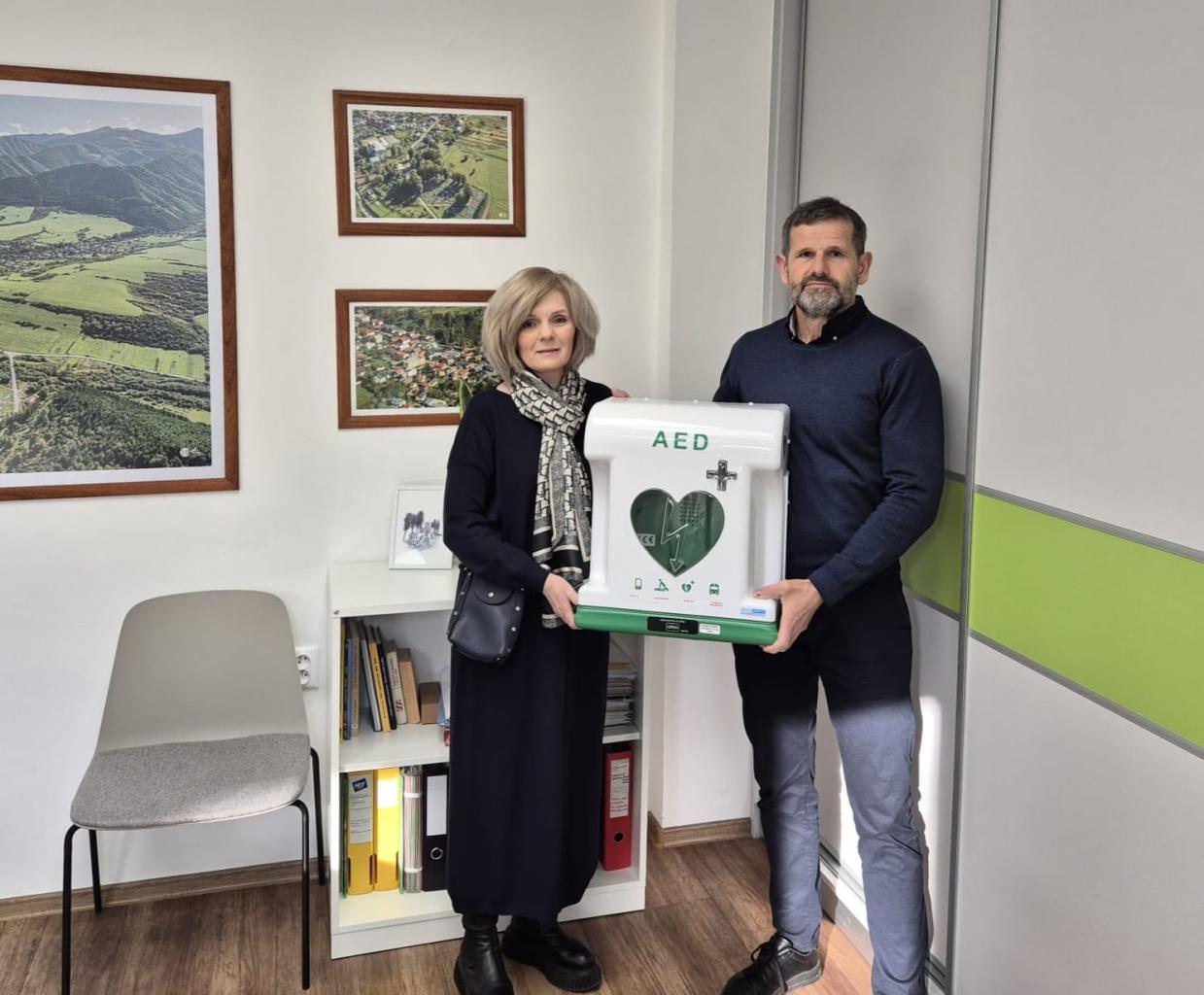 Prístroj je dostupný pre použitie v prípade ohrozenia života. Nachádza sa vedľa hlavného vchodu. Priestor je monitorovaný kamerovým systémom.