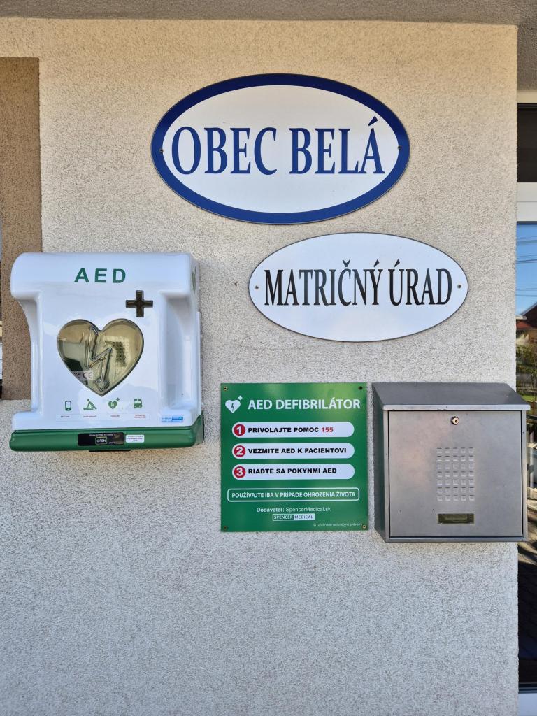 Obec Belá s radosťou informuje svojich obyvateľov, že vďaka štedrosti spoločnosti SBD, spol. s.r.o. Hodonín, sme získali najmodernejší AED defibrilátor v hodnote 2430€. Tento život zachraňujúci prístroj výrazne prispieva k zvýšeniu bezpečnosti všetkých obyvateľov a návštevníkov našej obce. Automatizovaný externý defibrilátor (AED) dokáže v prípade náhleho zlyhania srdca významne zvýšiť šance na prežitie do príchodu zdravotnej pomoci. Vyjadrujeme úprimné poďakovanie spoločnosti SBD, spol. s.r.o. Hodonín za tento hodnotný dar.